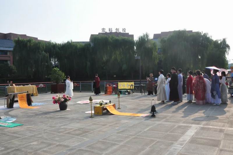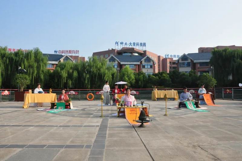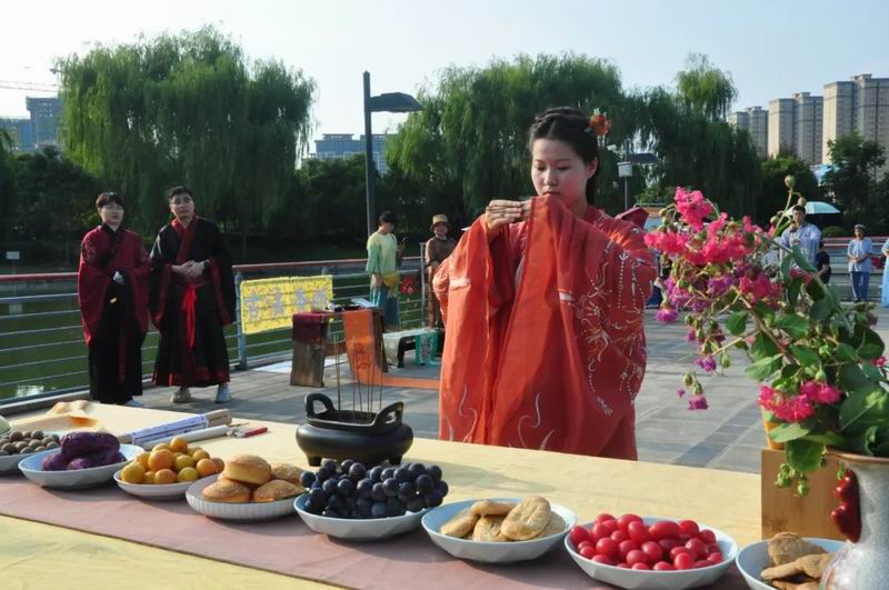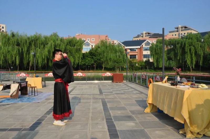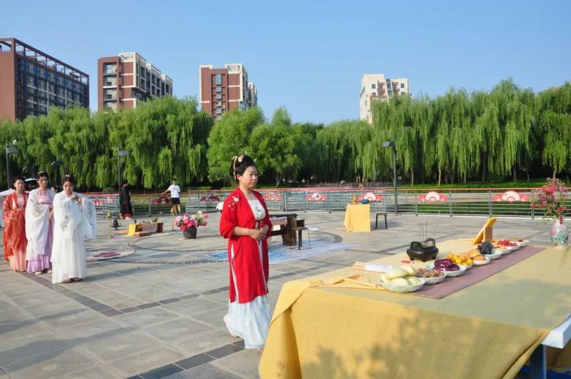 今天是8月4日,農歷七月初七乞巧節。下午17時許,中國華僑國際文化交流基地炎黃科技園的湖心平臺上格外熱鬧,一場別開生面的乞巧節傳統文化大集活動正在這里舉行。